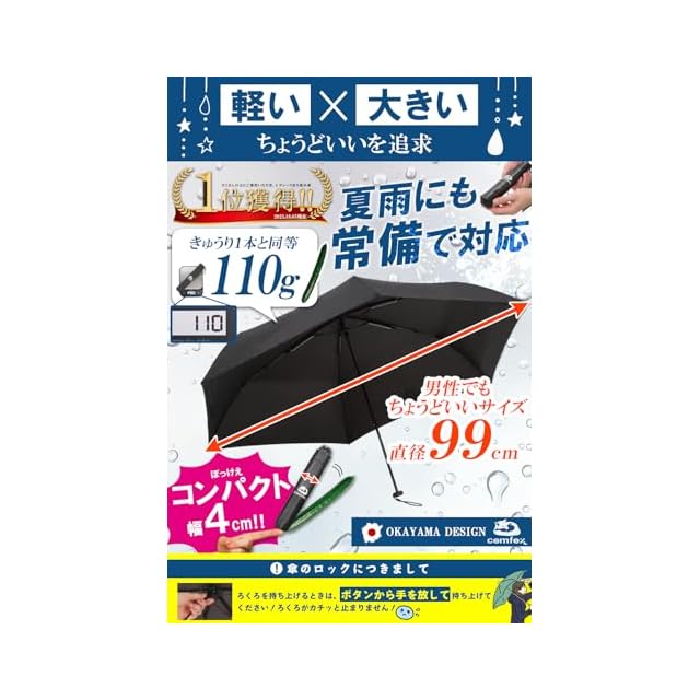 ✅【「ちょうどいい 折り畳み傘 」を岡山から】こんなお悩みありませんでしたか?「大きい 傘 だけど持運び不便で利便性が・・・」「軽くコンパクトだけど実用性が・・・」 弊社企画担当も悩んでいました。悩んで悩んで出した答えが、その中間が一番【ちょうどいい 折り畳み傘 では!?】 .