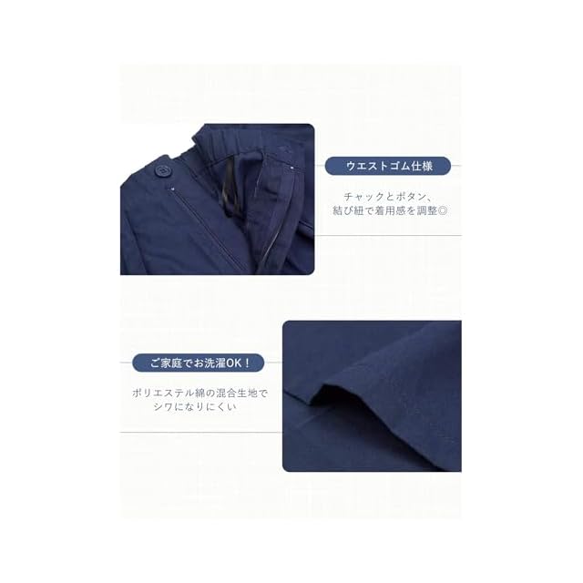 肌触りが良くシワになりにくい生地を使用しています。作業着や部屋着、パジャマにもおすすめ。