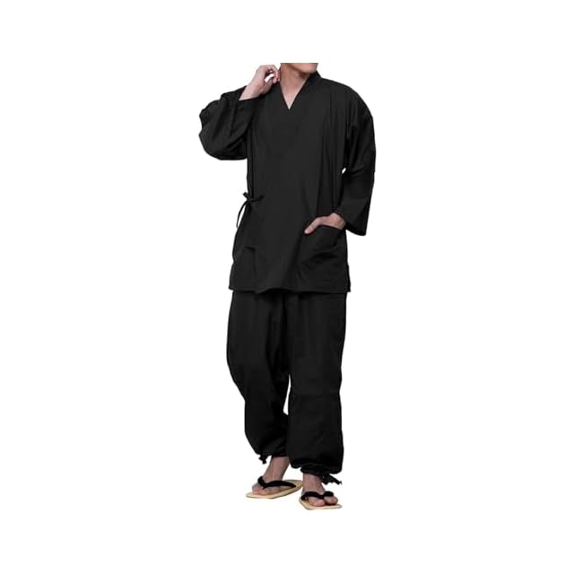 [KYOETSU] [キョウエツ] 作務衣 さむえ 男性用 メンズ 夏 冬 大きいサイズ さむい男性用 通年 作務 衣 (M, 黒)