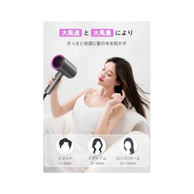 【2025年強化モーター、速乾ヘアドライヤー】ヘアドライヤーは最新バーションの強力モータを採用、高速で安定した気流を生成でき、髪にダメージを与えずに数分間以内に根元から髪を乾燥することができます。早く長い髪を乾かしたい方に最適なドライヤーです。