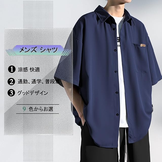 シャツ メンズ 半袖 夏服 五分袖 涼感 メンズ おおきい サイズ ゆったり アイスシルク かっこいい 快適通 気性 軽い 柔らかい ビジネス カジュアル ビッグ シルエット おしゃれ 無地 シンプル オシャレ