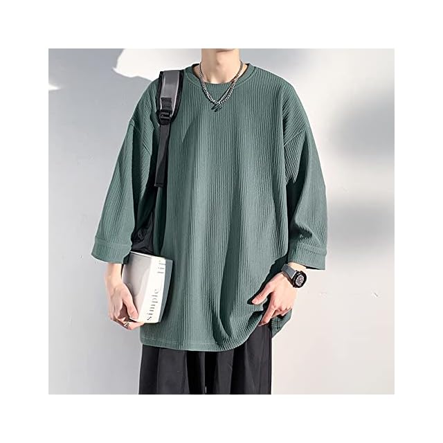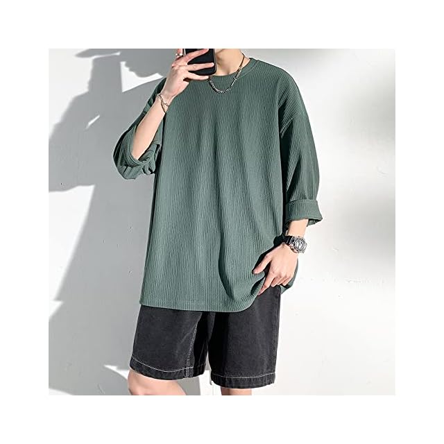 [Poperdision] 七分袖 Tシャツ メンズ 夏服 メンズ おしゃれ トップス 人気 無地 大きいサイズ シンプル オシャレ ゆったり 柔らかい肌触り 涼しい 快適 ファッション ビッグ シルエット かっこいい 春夏秋 Green XL