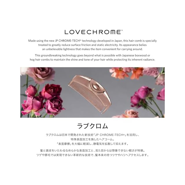 【極めてなめらかな表面加工】:日本の工業技術「JP CHROME-TECH」により、滑らかな表面加工が接触摩擦を最小限に留め、髪へのダメージを削減します。さらに、微細な空洞をふさぎ、汚れもつきにくくなっています。
