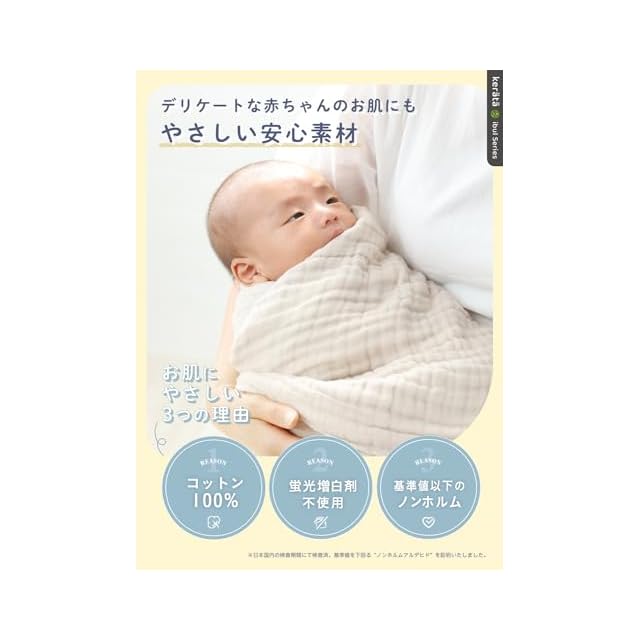 商品名:(ケラッタ) イブル ベビー バスタオル タオル 赤ちゃん 6重ガーゼ 105×105cm 正方形 (グリーン ベージュ ホワイト)