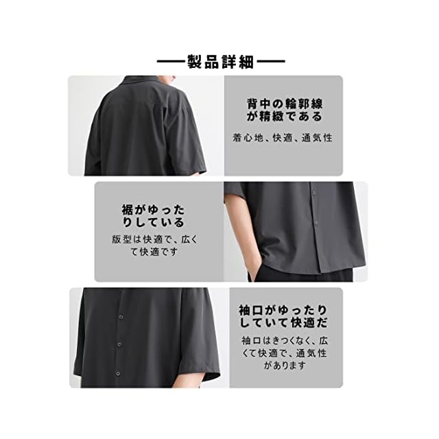 布地はとても柔らかくて滑らかで、肌にとても優しいです。通気性も高く、湿気を吸って外にはき出す能力が高いので、シャツの中をいつでも快適に保ちます。<br>摩擦に耐えてしわに強くて、変形しにくい。パールのような柔らかい光沢感で高級感を醸し出してくれます。<br>ゆったりとしたデザインで、高品質素材で作られたメンズシャツは、窮屈感がなく、吸汗性と通気性が良く着心地も抜群で、るおしゃれな一枚です。<br>シンプルで飽きこないデザイン、体を包み込むような柔らかな着用感が魅力です。合わせやすいアイテムで通勤、通学、お出かけ、デート、フォーマル、リゾート、普段着、キャンプ、旅行にも最適です。<br>気性に優れ、柔らかい肌さわりを与えてくれる。シンプルなデザインなのでどんなコーデにも合わせ易く、色々と着回し出来る色チ買いで欲しくなる1着。程よい厚みの生地は季節を問わず活躍してくれ、休日のカジュアルスタイルや、ビジネスにもハマる万能シャツ。<br>クラシックでシンプルなデザインと身に着けている時の柔らかさとゆったりさが魅力的です。清潔感のある色で様々なインスピレーションを与えてくれます。<br>ゆったりとしたデザインで、高品質素材で作られたメンズシャツは、窮屈感がなく、吸汗性と通気性が良く着心地も抜群で、大人の爽やかさで魅せるおしゃれな一枚です。<br>肩のところは二重構造の設計で、しっかりと肩の形を保ってくれます。また、センターボックスのデザインが窮屈感を感じさせない長袖半袖シャツです。<br>シンプルで飽きこないデザイン、体を包み込むような柔らかな着用感が魅力です。今年のトレンドに合わせ、シルエットを何度も見直し、様々なシーンに合うよう、時代のニュースに合わせた仕上がりとなりました!