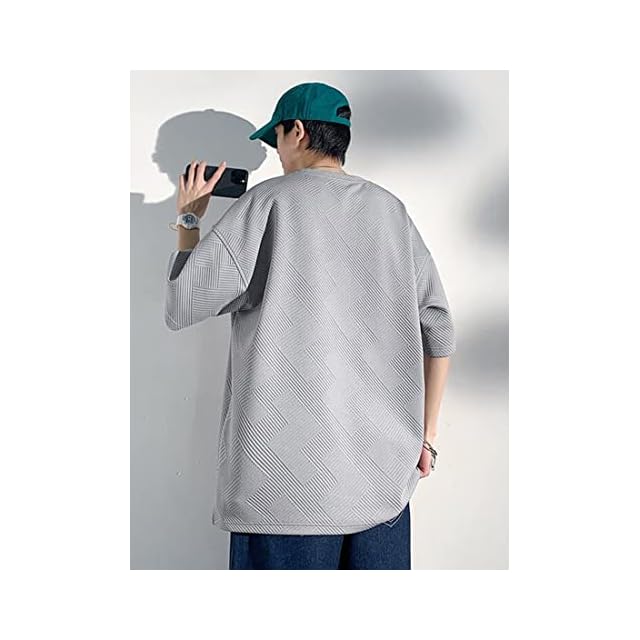 [Poperdision] メンズ 夏服 tシャツ メンズ 半袖 五分袖 ゆったり 大きいサイズ かっこいい ビッグシルエット おしゃれ なつふく クルーネック 人気 無地 快適 カットソー ストリート めんず 夏用 ウェアgray-4XL