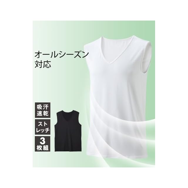 汗をかいても乾きやすく、なめらかな肌触りの吸汗速乾素材、動きに合わせて伸縮するストレッチ効果のある快適インナー。首元すっきり深Vネックのノースリーブタイプ、洗い替えにも重宝する3枚を同色セットで。大きいサイズも展開しております。(M~10Lサイズ)<br><br>【M】:着丈:70<br>【L】:着丈:72<br>【LL】:着丈:74<br>【3L】:着丈:76<br>【4L】:着丈:78<br>【5L】:着丈:79<br>【6L】:着丈:81<br>【7L】:着丈:82<br>【8L】:着丈:84<br>【10L】:着丈:85
