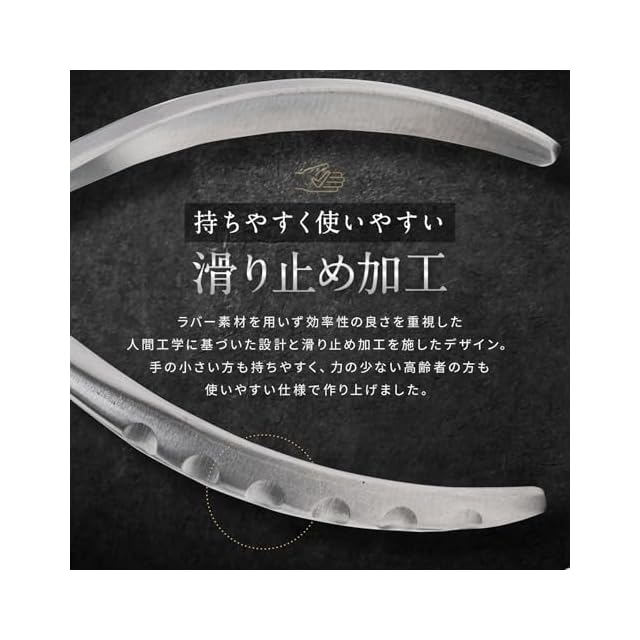【握りやすい持ち手】手の小さい女性や、力の弱い方でもお使いできるよう、持ち手には溝を作ることで余計な部品をつけずにコンパクトな設計となっております。