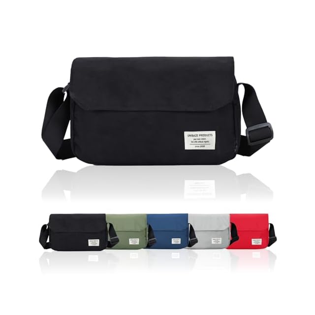 [ユニベイズ] [本当に沢山入る!] ショルダーバッグ メンズ レディース 小さめ 軽量 斜めがけ ナイロン シンプル ストリート 無地 (ブラック)