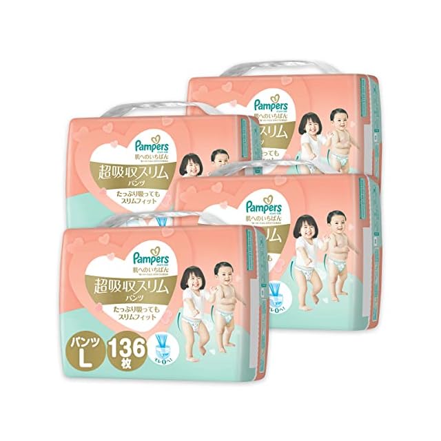 【パンツ Lサイズ】パンパース オムツ 肌へのいちばん 超吸収スリムパンツ (9~14kg) 136枚(34枚x4パック) [ケース品]