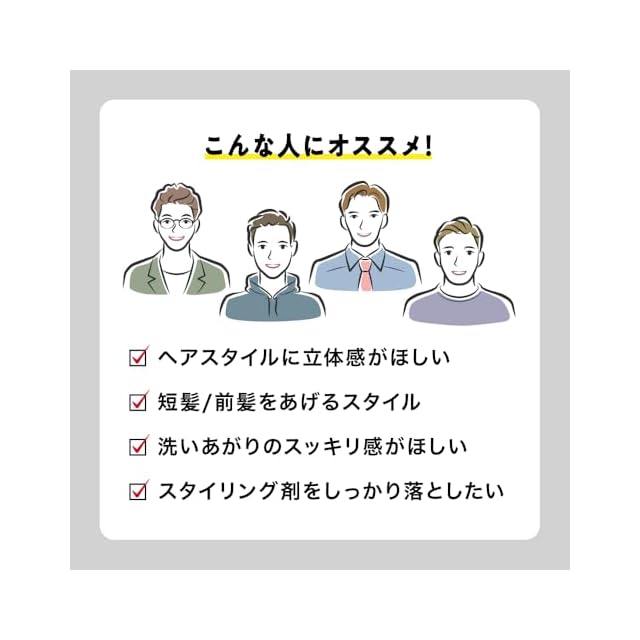✅13種の厳選したヘアケア成分…毛髪構成成分上位5種のアミノ酸に着目した「プロテイン5エキス」をはじめ、「ミネラル」「ビタミン」「保湿成分」を13種配合。地肌と髪の清潔感をサポート。