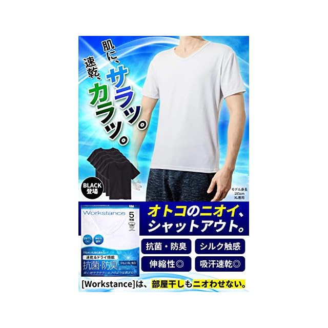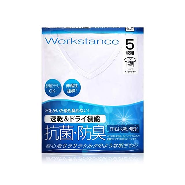 【WORKSTANCE】は抗菌防臭に優れた深めのVネックインナーシャツです。汗を掻いた後の嫌なニオイをシャットダウンし、常にサラサラ状態をキープします。