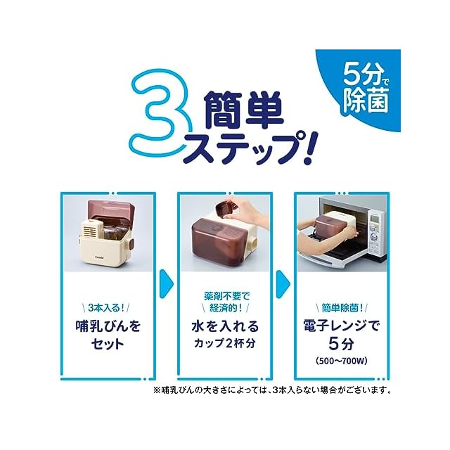 哺乳びん除菌が電子レンジで簡単5分。除菌後はそのまま保管ケースとして使用できます。