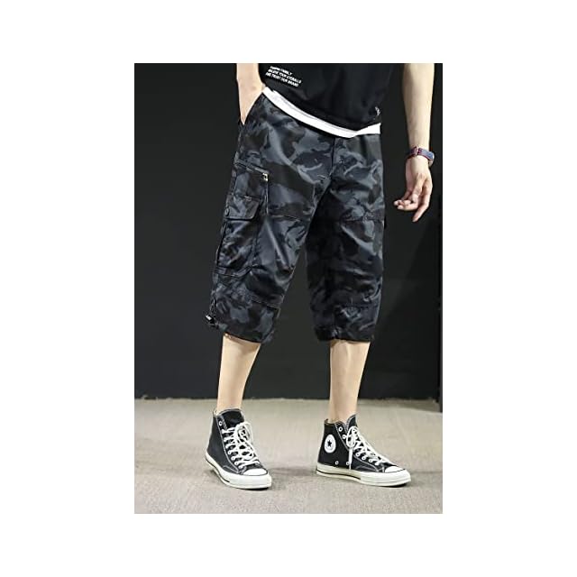 商品名:[foveitaa] カーゴパンツ 7分丈 メンズ ハーフパンツ ミリタリー 半ズボン ショートパンツ 大きい サイズ ゆったり クロップドパンツ アウトドア ボトムス スウェットパンツ カジュアル 無地 コットン ズボン ゆったり 春夏micai-L