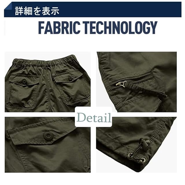 【1】ズボンはベルトを与える、定番の無地デザインでコーディネートに取り入れやすく、着やすく、適度な厚みのあるルーズなシルエットで窮屈感なく履きやすく、夏でもストレスなく着用できます。【2】フロントポケット×2、バックポケット×2、サイドポケット×2、より立体的でファッショナブル。【3】とても便利でストレスフリーなアクティビティに最適で、今季一番着たいミリタリーオーバーオールです! 普段使いはもちろん、キャンプや釣りなどのアウトドアにも。【4】ウエストゴム仕様で動きやすい。 裾を絞ってスタイルアップも楽しめるデザイン。また、レングスは7分丈だから、ショートに抵抗のある方でも大丈夫です。
