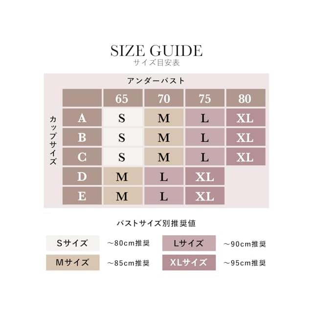 【上向きバストで垂れケア】ノンワイヤーなのにしっかり支えて上向きバストを作り出す昼兼用ナイトブラ。ふわっとやさしくバストを包み込み、垂れをケアしながら丸くて綺麗な谷間メイク。【フィット感】しっとりもちもちの一体型パッドはズレにくくフィット感抜群。2WAYストレッチ素材採用で、お肉を集めて理想のかたちに整えキープ。幅広の肩紐は伸縮性がよく、動いてもずズレにくい。脇高設計で寝ている間のお肉の横流れをガード。【つけ心地】寝ている間のバストケアのためにきつすぎず緩すぎないつけ心地。金具ゼロ・ボーンゼロ・洗濯タグレスで身体にすっと馴染み、やさしく包まれる。360度やわらか設計でどんな体型にもフィットするので、1日中使える。睡眠時はもちろん、仕事や育児、スポーツブラとしても大活躍。【厳選素材】サイドから背中まで無縫製シームレス生地採用、肌触りがよく柔らかい。通気性もよく、さらさらとした着心地。繊細で美しい厳選レースを胸部にあしらい、とろけるような柔らかい肌触りの生地とあわせ、優しく贅沢な雰囲気に。【洗濯方法】洗濯機ソフト設定または手洗い洗濯 【着用方法】足元から履くようにして着用。詳しくは同梱説明書をご覧ください【パッド】取り外し可能な左右一体型パッド 【ホック】ホックなし(金具やボーン不使用) 【サイズ】S,M,L,XL(詳細は画像をご覧ください)