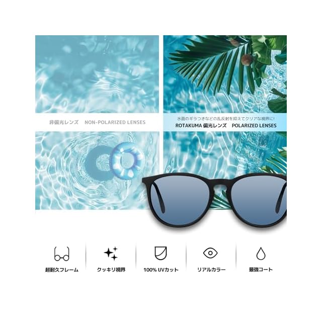 商品名:[ROTAKUMA] サングラス 偏光レンズ メンズ レディース ユニセックス おしゃれ 超軽量 人気 tr90 UV400 運転 ドライブ 釣り用 sunglass for men women (ブラック フレーム/ブルー レンズ/ブラック テンプル)