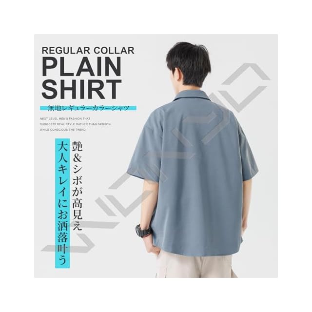 商品名:[W Wonyo] しわ加工 半袖シャツ メンズ 涼しい 夏服 シンプル 無地 レギュラーカラー カジュアルシャツ 人気 トップス 薄手 ワンウォッシュ 上着 かっこいい服 軽量 吸水 速乾 ドライ しゃつ ノーアイロン 羽織り ゆったり 大きいサイズ 全8色 shirt for men 春 夏 smoke blue M