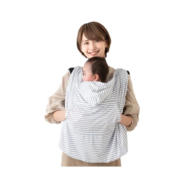 (ケラッタ) 抱っこ紐ケープ 日除け UVカット 春 夏 秋 UPF50+ サイズ調整で虫よけにも ベビーカー カバー クリップ取付 (ノーマルタイプ, ボーダーグレー)