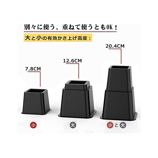 商品名:DEWEL 高さ調整 継ぎ脚 かさ上げ テーブル脚 8個セット 洗濯機 台 高さをあげる 机 脚 こたつ テーブル ベッド ソファー 2段 高さ調節 大と小 安定感 耐荷重500kg 正方形 (黒色)