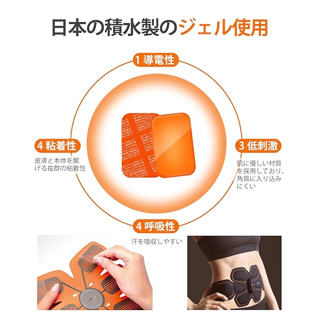 ★交換用ジェルパッドは安心の日本製ジェルシートを採用して生産と梱包は中国で行っています、粘着力にも優れまています。簡単に剥がれにくく、各種EMS腹筋ベルトに対応した互換品です。安心してご使用頂けます。