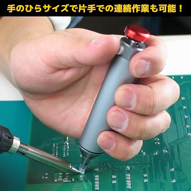 大容量シリンダーとシリコンノズルで、吸引力に優れたハンダ吸取器。