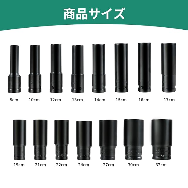 15本セット 1/2 12.7mm ディープソケット ソケットレンチ ロングソケット 六角ソケットセット 六角 工具 DIY 収納ケース付き 8mm 10mm 12mm 13mm 14mm 15mm 16mm 17mm 19mm 21mm 22mm 24mm 27mm 30mm 32mm (15本セット)