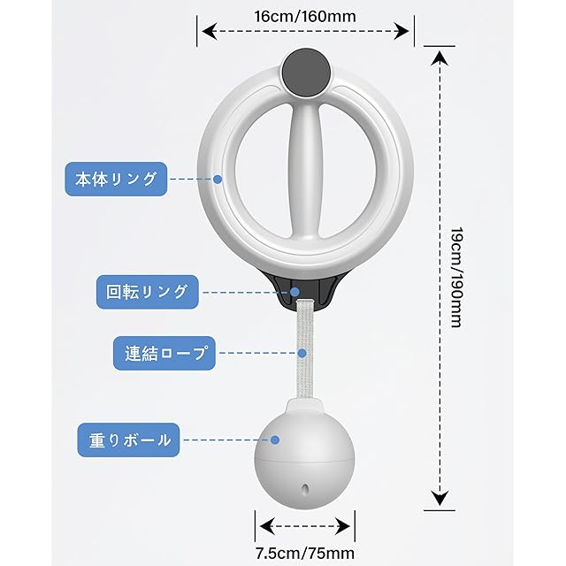 TINRIEFから新登場!二の腕痩せに特化した新設計のトレーニング器具。電源不要、組み立て不要で、フラフープの遠心力原理を応用した設計により、軽く振るだけでスムーズに回転メカニズムが作動します。内蔵されたリング状の回転レールと吊り下げ式のウエイトボールにより、360°全方向に静かに滑らかに回転し、高感度設計により、強力な遠心力を簡単に生み出します。