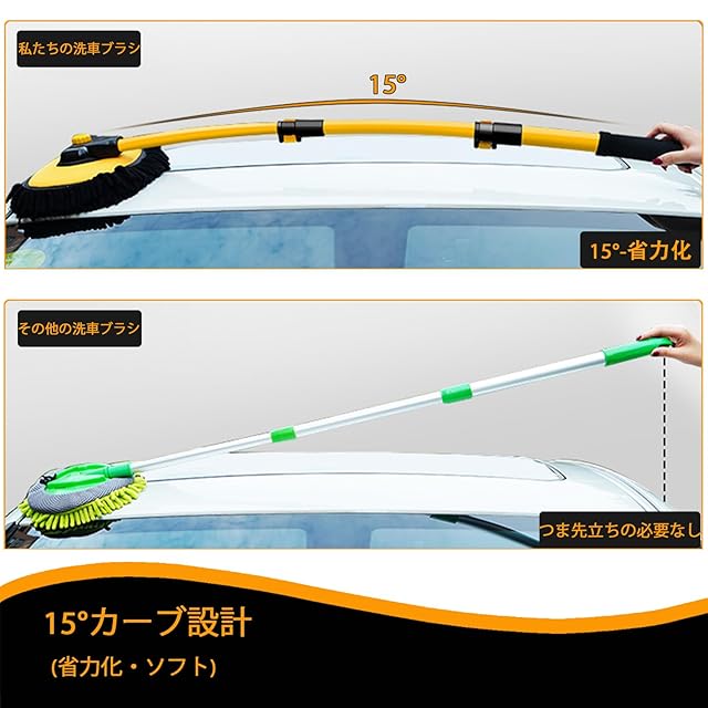 商品名:15°曲げ 洗車 ブラシ 伸縮柄付き 43 " アルミニウム 洗車モップ マイクロファイバー 洗車用品 トラック用 屋根用 掃除モップ 自動車用 SUV ホイール タイヤ 業務用 ロングブラシ カーブロッド ソフト 洗車 モップ 車 ほこり取り 超吸水 洗車グッズ 2 で 1 車クリーニングブラシ 洗車用スポンジ セット ディテーリングブラシ