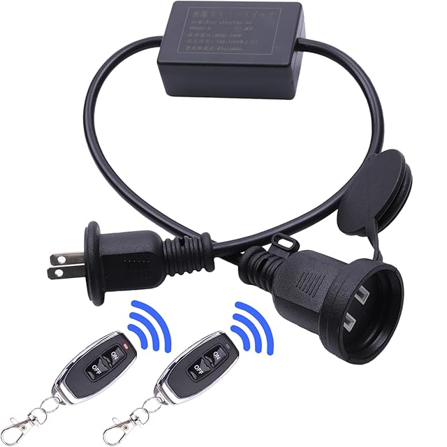 商品名:etazakka 延長コード スマートスイッチ 屋外用 無線 リモートコントロールスイッチ 照明制御無線スイッチ 長距離送信機 100V/200V通用 防水スイッチ付き 防雨型コンセント 0.5M 屋外可能 10Aリレー 1000Wまで防雨キャップ付 作業用 蓋つき PSE認証 電源ケーブル 電源コード 作業用 2芯 汎用コンセント (1000Wまで-1個単品)