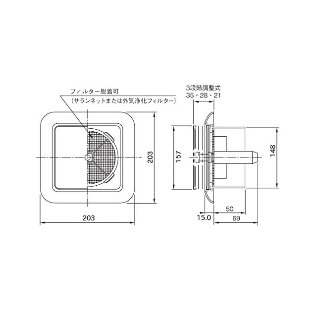 ユニックス ワンタッチ風量調整型換気孔 KRP 150BWFH クールホワイト
