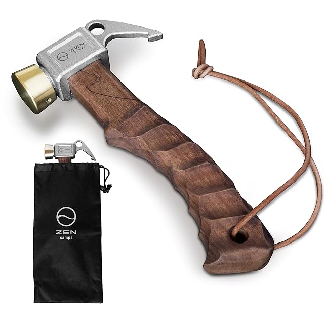 商品名:ZEN Camps ペグハンマー ショートハンマー 軽量 小型 コンパクト キャンプ 木製ハンドル 名栗加工 真鍮ヘッド(榉木(オイルステン))