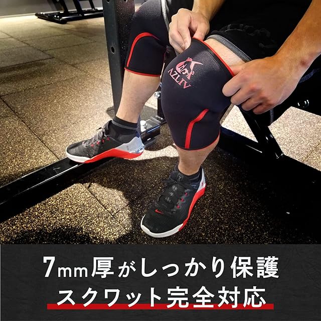 AZLIV (アズリブ) ニースリーブ 7mm ニーサポーター 膝サポーター 筋トレ 筋力トレーニング スクワット ウエイトトレーニング ジム (赤, M)