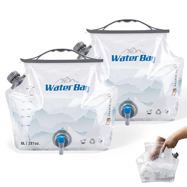 ウォーターバッグ キャンプ ウォータージャグ ウォータータンク 折り畳み 洗浄便利 全開口式 回転式コック 乾きやすい 注水口付き 8L 2個セット 透明 頑丈 自立式 防災 非常用 登山 アウトドア (2, 透明色)