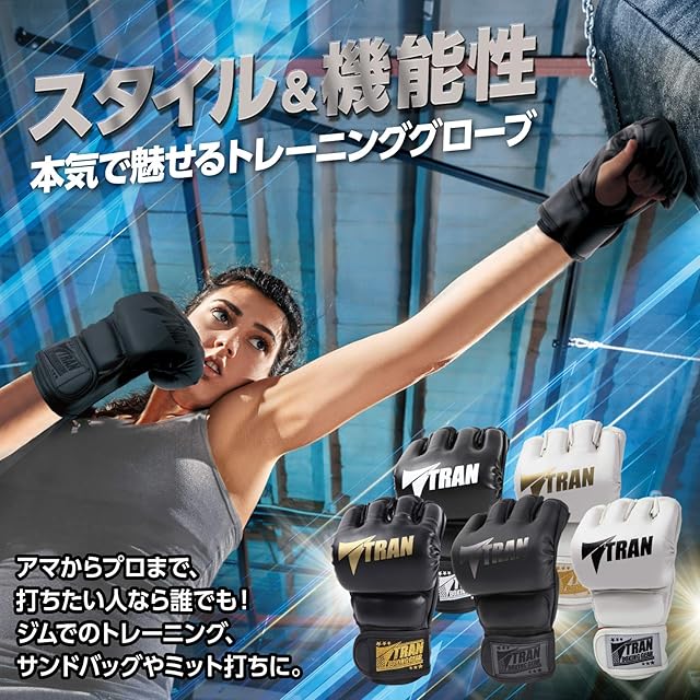 オープンフィンガーグローブ Mサイズ 【総合格闘技「修斗」元世界ランカーも推薦】TRAN パンチンググローブ 総合 格闘技 フィットネス ボクシング グローブ キック ボクシング ジム 格闘技 ストレス発散 空手 テコンドー サンドバッグ MMA ムエタイ ボクササイズ トレーニング グローブ 運動不足 男女兼用