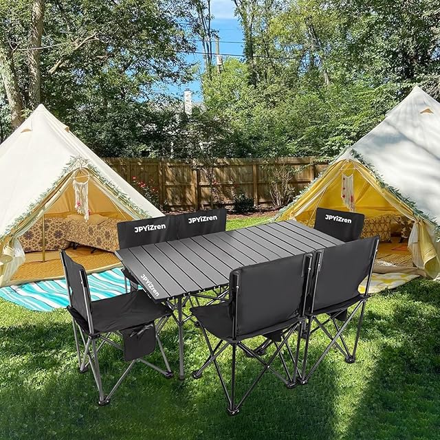 商品名:JPYiZren アウトドア テーブル チェア 7点セット アルミテーブル椅子 ピクニック ベンチセット ピクニックテーブル 超軽量 折り畳み 組立簡単 収納バッグ付き BBQ お釣り テント ガーデン 屋外 キャンプ用品 (7, ブラック)