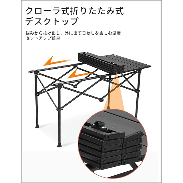 手軽に組み立て:折りたたみテーブル&チェアセットは、一体型設計により、工具なしで簡単に折りたたみや展開ができ、時間と労力を節約できます。屋外での食事や休憩スペースを素早く整えることができ、簡単な取り付けで、より多くの時間を屋外で楽しむことができます