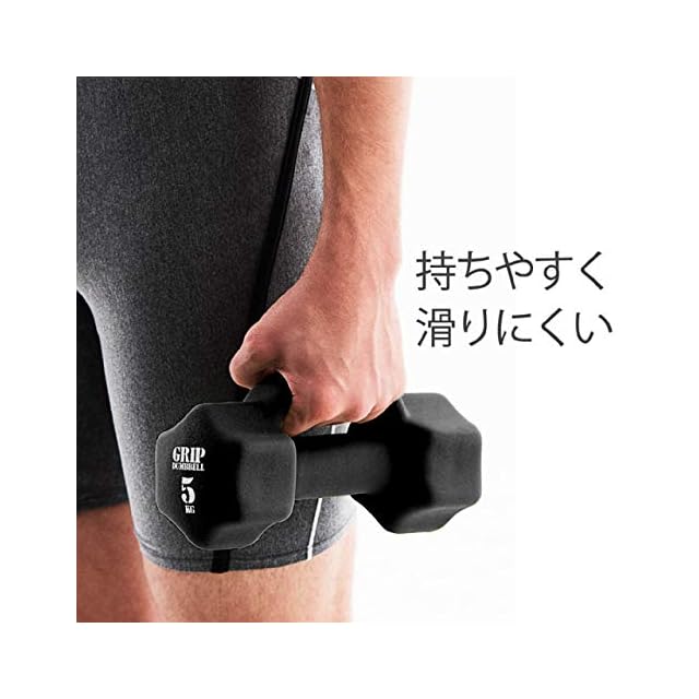 PVCコーティングの滑り止め加工で、手が滑りにくいグリップダンベル。