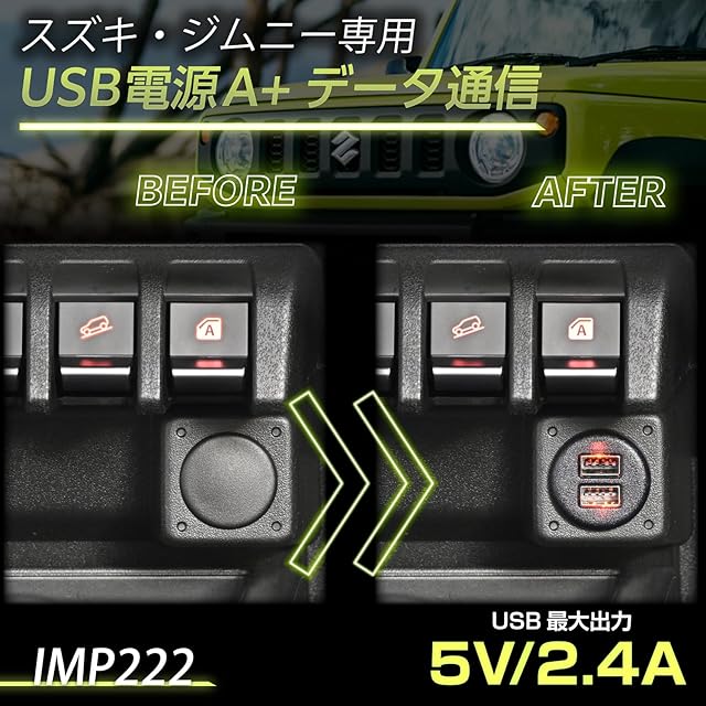 商品名:セイワ(SEIWA) 車種専用用品 スズキ ジムニー&シエラ&ノマド(JB64/JB74/JC74)専用 USB タイプA 電源 ポート+データ通信ポート IMP222 リバーシブル自動識別 純正同色LED 専用設計 スマホ タブレット充電 データ通信 Apple CarPlay Android Auto 対応 5ドア JIMNY NOMADE にも対応
