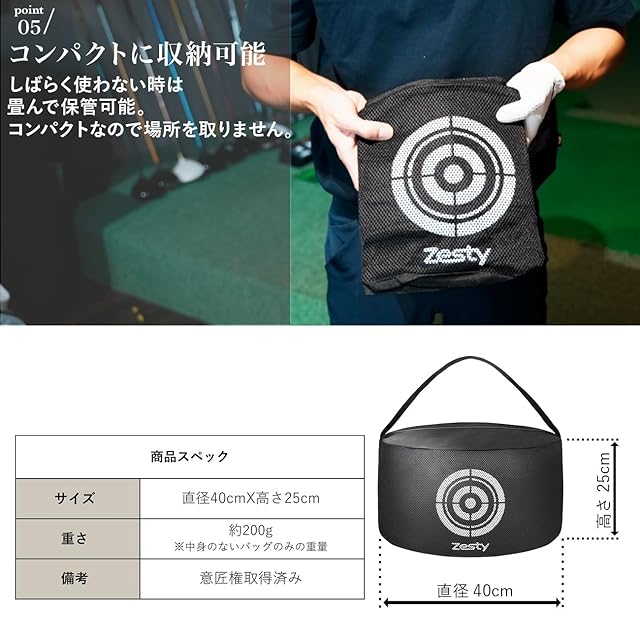 【静音だから近所迷惑にならない】 静音仕様のインパクトバッグだから、スイング時の音が気になりません。朝晩の練習やマンションなどの屋内練習に最適なインパクトバッグです。 【静かさの特徴はメッシュ素材】 インパクトバッグを叩いた時に音が大きくなってしまうビニール素材は使用雨していません。側面にメッシュ生地を採用し、叩いた時の音が小さく静かになるように設計。クラブや手の負担も小さくなるのが特徴です。 【丈夫で長持ち】 インパクトバッグは堅牢な布素材を、強度の高い糸で2重に縫い合わせた特殊縫製。また、側面がメッシュ仕様なので、叩いた空気がすぐ抜けるため丈夫で破裂することなく、長くお使いいただけます。 【中身を入れてすぐに使える】 インパクトバッグの中身には、古着屋タオル、毛布などを入れてご使用ください。※インパクトバッグの中身は入っていない状態でお届けします。なお、砂や石などを入れると破裂やクラブや手を痛めるため、おやめください。【コンパクトに収納可能】 しばらく使わない場合はたたんで保管可能です。コンパクトなので場所を取らず、邪魔になりません。