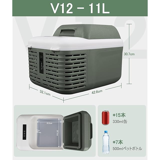 商品名:Alpicool 車載冷蔵庫 11L ポータブル冷蔵庫 小型 -20℃~20℃ 急速冷凍 3WAY電源対応 DC12V/24V AC100V 車載家庭両用 45°耐震設計 固定用穴付き 低電圧保護 車中泊 キャンプ 現場 アウトドア 静音 45W省エネ 日本語説明書 ポータブル 冷蔵庫 V12
