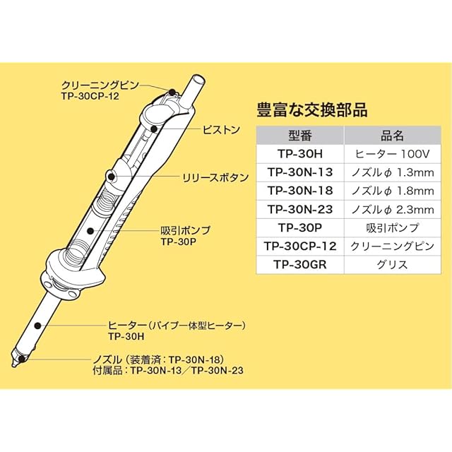 商品名:太洋電機産業(goot) 加熱式はんだ吸取器 ノズル3種付 TP-30【1台2役】【片手で作業できる】【はんだ除去・リペアなどに】半田吸い取り機 ハンダ吸い取り 吸い取り器 はんだ吸引器