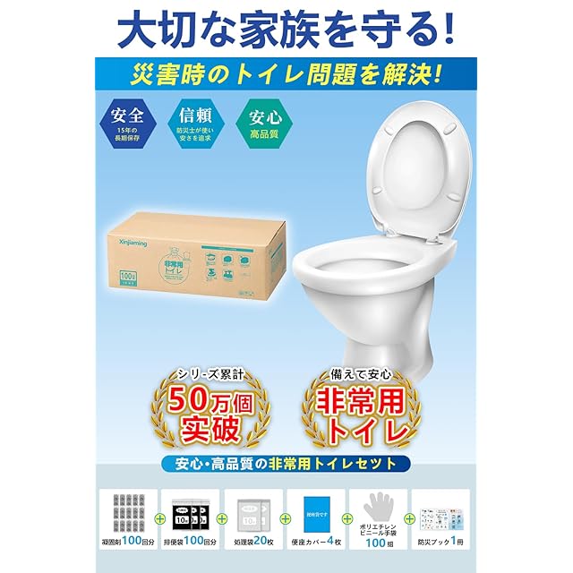どこでも簡単トイレ【防災士が監修】 簡易トイレ 救急トイレ 携帯/防災/非常用トイレ 防災グッズ 防災ガイドブック付き 15年保存 (100回)
