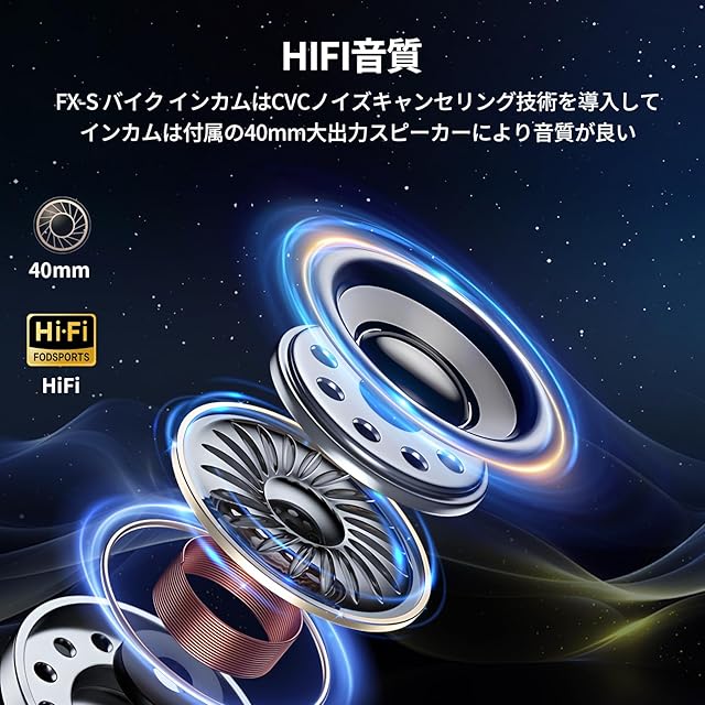✅【CVC騒音抑制技術&素敵なHIFI高音質&40mm高性能ステレオスピーカー】バイク インカム FX-S はCVCノイズキャンセリング技術を導入して、防風マイクにより通話エコーを除去し、エンジン騒音や風切音等のノイズを減らします。相手と通信の時に、イヤホンからの音もはっきりと聞き取りやすいです。さらにインカムは付属の40mm大出力スピーカーにより音質が良くて、高速走行中でも相手からの声や携帯電話からの音楽などが鮮明に聞こえます。