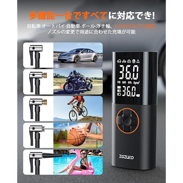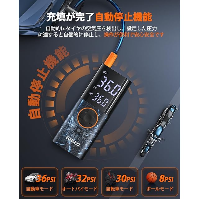 【7800mAh 大容量電池・タイヤ空気圧検知】Zgzuxo空気入れ 電動は大容量の 7800mAh リチウムイオン バッテリーを搭載したこのポンプは、1 回の充電で4 台の車のタイヤを膨らませることができます。✅市場で最大のバッテリー量を採用し、使用時間が2倍に増加した。一度充電して長時間動作可能です。アウトドアやレジャーはもちるん、日常生活に欠かせない。コードレスでタイヤのエアコンプレッサーを手軽に実現、両手を解放されます。これにより、外出中に電源が切れる心配がなくなります。ZGZUXO電動空気入れは精密なタイヤ圧力を測定し、タイヤ圧力の状態を簡単に読み取り、観察することができます。正確な空気圧管理を簡単に行えます。