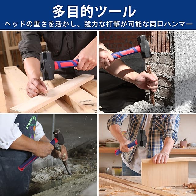 【多目的ツール】両口ハンマーは、障害物の除去、岩石の除去、石工、金属加工、またはチゼル杭の打設に、家庭装飾や産業用からキャンプまであらゆる用途に使用できます。ご注意:保護メガネ、ヘルメット、軍手などを着用して下さい。