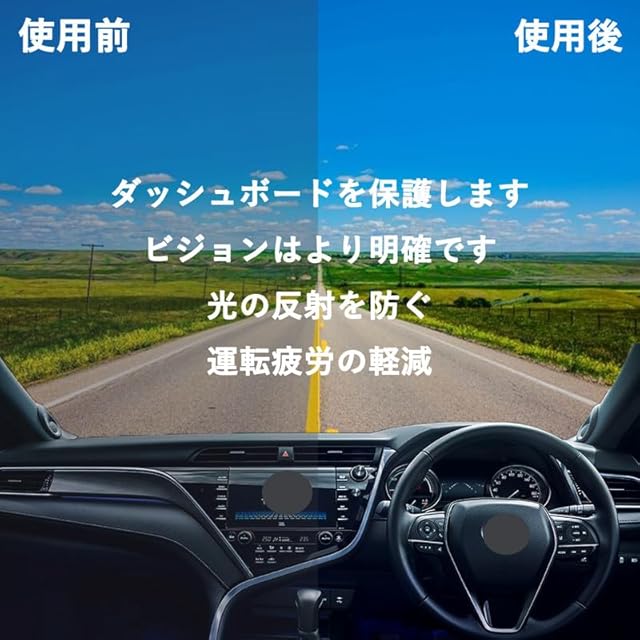 【安全運転を改善する】太陽光の屈折を防ぐため、フロントガラスの明るさを透明にし、運転の安全性を高めます。ダッシュボードが紫外線にさらされるのを防ぎ、ひび割れや反りを防ぎます。