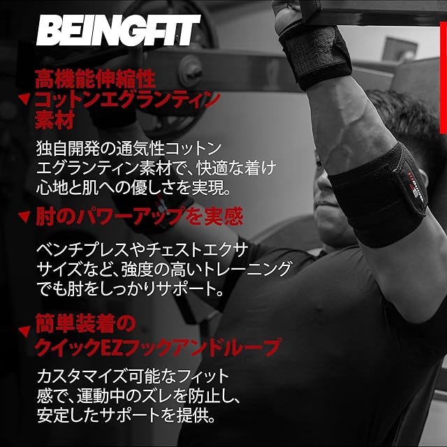 商品名:Beingfit プロ仕様 エルボーラップ エルボースリーブ 肘 サポーター 筋トレ ベンチプレス ウエイトリフティング,クロストレーニング、パワーリフティング用 男女兼用 90cm