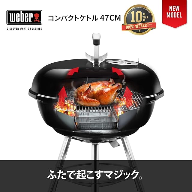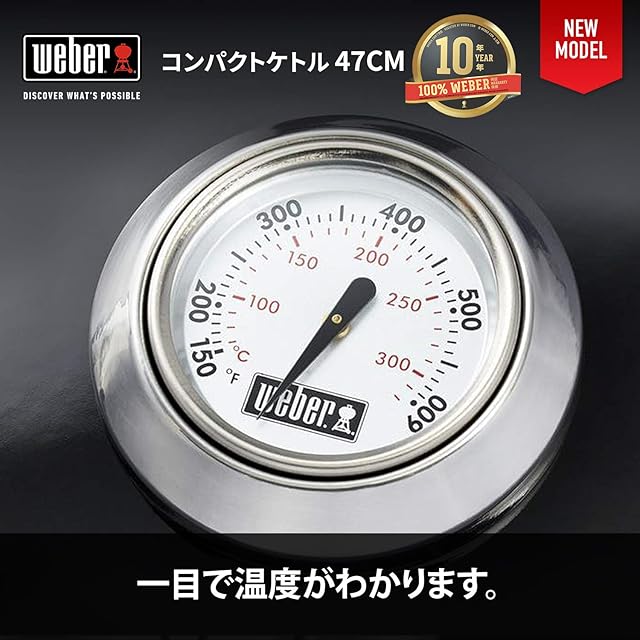 Weber(ウェーバー) バーベキュー コンロ 直径47cm コンパクトケトル 炭 キャンプ 6-8人用 焚き火台 【日本正規品10年】1221308 / 温度計付き 1221308 ブラック