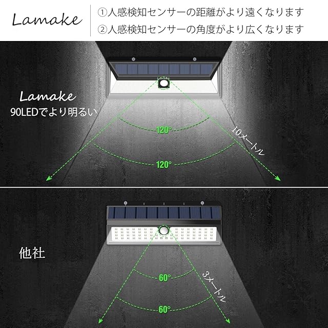 商品名:Lamake 超超明るい 4400mAh大容量バッテリー内蔵 センサーライト ABS ソーラー充電 三つ照明モード 明暗センサー 取付簡単 1pack(8w*1個)